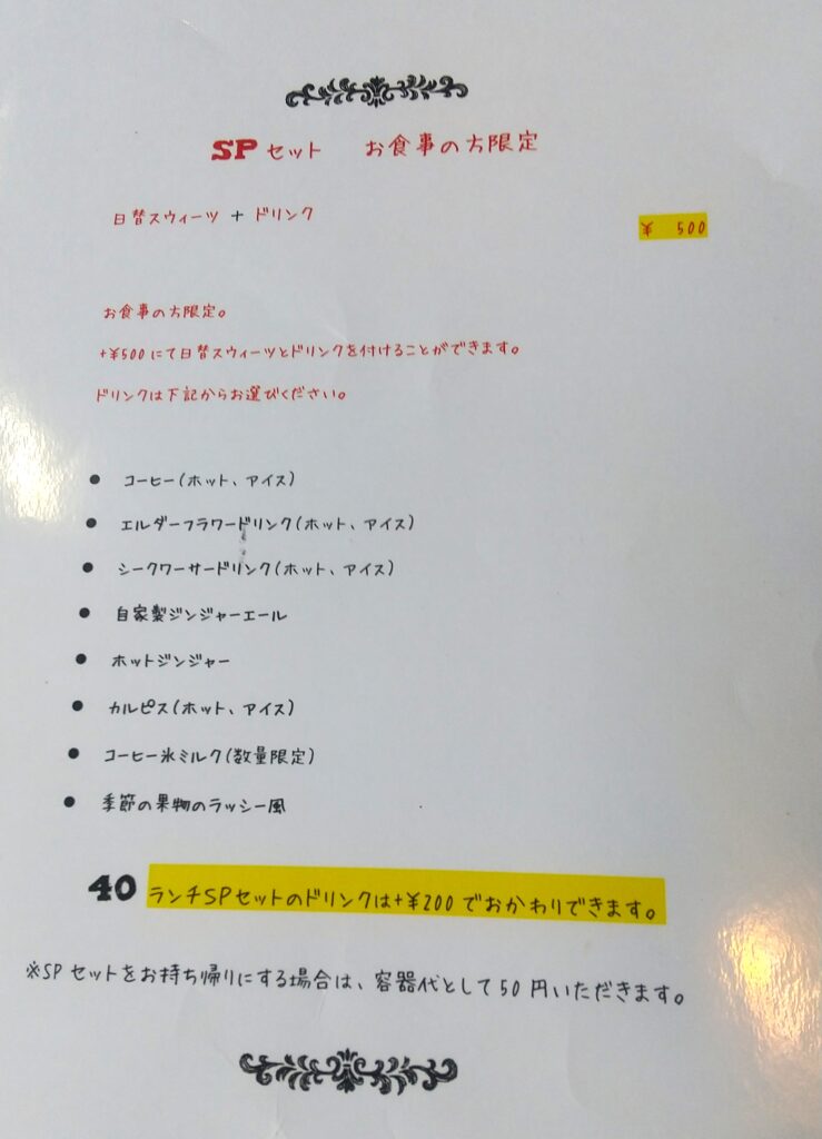 日替わりスウィーツ+ドリンクが